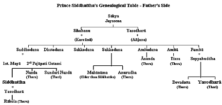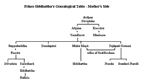 Buddha pärines khattija ehk valitsejate ja sõdalaste seisusest (khattiya-kula) ning Gootama põlvnemisliinist (gotta),[1] mida ta on nimetanud ka Päikese-nimeliseks põlvnemisliiniks (ādiccā nāma gottena).[2] Tema isa oli saakja (sākiyā/sakya/sakyā) hõimu kuningas (rājā) Suddhodana ja ema kuninganna (devī) Māhāmāyā (Māhā Māyā), kes oli üks paljudest kuninga naistest[3] ning nad elasid Himaalaja jalamil asuvas saakja hõimu pealinnas Kapilavatthu’s. Nimepanemise tseremoonial anti lapsele nimeks Siddhattha, mis tähendab „täitunud soov“ või „kõik eesmärgid saavutanu“. Siddhattha Gootama (sansk Siddhārtha Gautama)[4] sündis Kapilavatthu ja Devadaha linna vahel asuvas Lumbinī pargis (lumbinīvana), mis kannab tänapäeval nime Rummindei ja kus asub Kuningas Ašoka külakäiku tähistav „Ašoka sammas“. „Nālaka suttas“[5] on toodud Siddhattha sünnipaigaks saakjate küla aladel asuv Lumbinī (sakyāna gāme janapade lumbineyye).