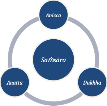 Püsitus, dukkha ja minatus on kõige olemasoleva tunnused. Kui püsitus (anicca) postuleerib, et kõik on pidevas muutuses, siis minatus (anattā) ütleb, et ei ole ühtegi staatilist, omaolemust omavat muutumatut suurust. Üheskoos tähendavadki anicca ja anattā kõikide asjade ning nähtuste mõistmist ja tajumist ilma objektiivse olemasoluta, sellisena, nagu see tõeliselt on: kõik inimesed, olendid, asjad ja nähtused on vaid osakeste peatumatu voog, pettekujutluslikud, omaolemusetud, psühhofüüsilised tingitud protsessid, mistõttu ei saa need sisaldada lõplikku rahulolu ja on seega dukkha. Need kolm olemasolu omadust kirjeldavadki sansaara (saṁsāra) loomust. Olemasolu omaduste vastandite läbi võib mittevirgunu vaid aimata nibbaana ehk vaibumise (nibbāna) olemust.