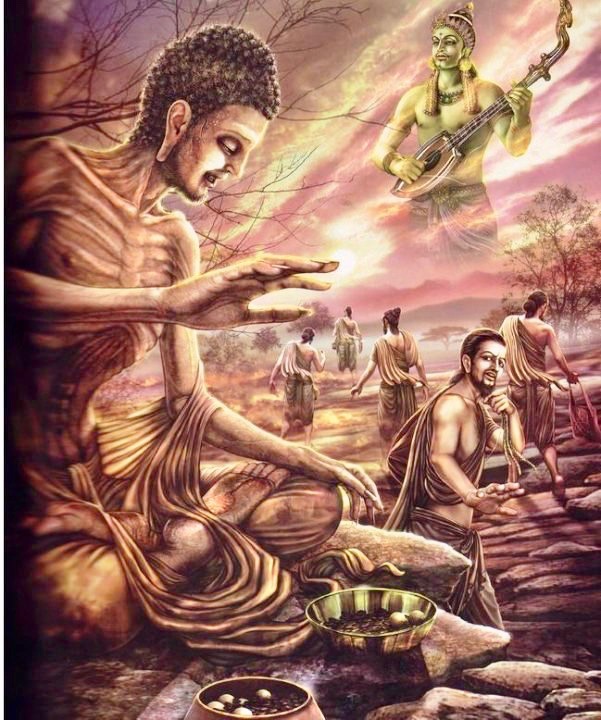 Askeet Gootama mõistis, et ei suuda seda õnne saavutada nälginud kehaga ja otsustas süüa tahket toitu. Kui Temaga koos püüelnud viis joogit: Kondañña, Bhaddiya, Vappa, Mahānāma ja Assaj nägid Gootama’t riisi söömas, lahkusid nad Temas pettunult ja süüdistasid Teda luksuslikku ellu tagasipöördumises.