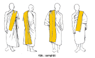 - Rüü (cīvara): (1) üks ülemine rüü (ekacciya uttarāsanga), (2) üks alumine rüü (ekacciya antaravāsaka) ja (3) kaks pealmist rüüd (diguṇā sanghāṭi).[4]